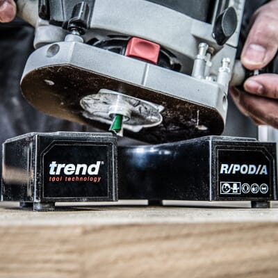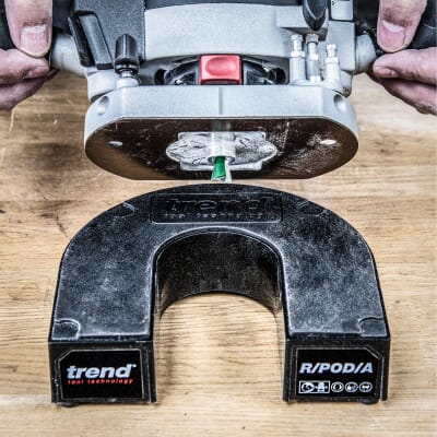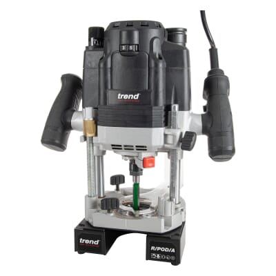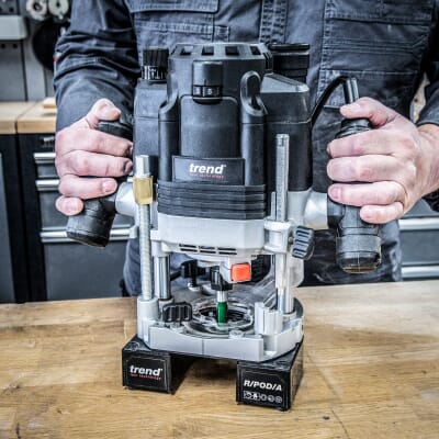 Praktisk stativ som du raskt kan plassere fresen på mens du veksler mellom oppdrag. Fresestålet kan stå montert men holdes oppe fra bordet.