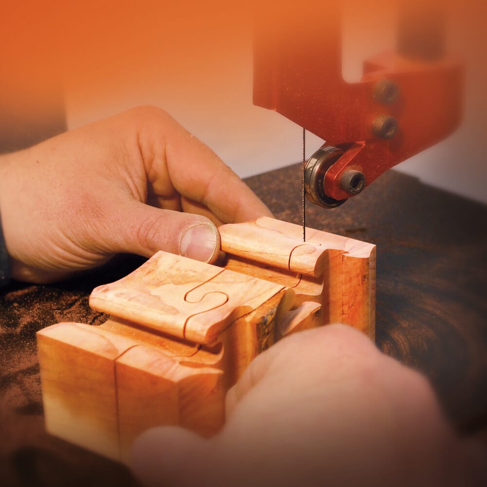 Pegas konturbåndsag - spesial sag med tynne kontur sagblad (bånd). Gir nye muligheter for presisjons skjæring og mer kapasitet enn en vanlig kontursag.
