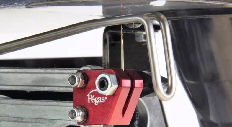 Ny utgave: nå med ekstra hovedstrømsbryter og avsugsmulighet. I Pegas versjonen er også enkelte tekniske forbedringer gjort innvendig i maskinen som gir en enda stødigere maskin med mindre vibrasjoner. Leveres nå med nytt sagbladfeste, se bilde, som er 40% lettere, bedre holdfasthet, gir mindre vibrasjoner.