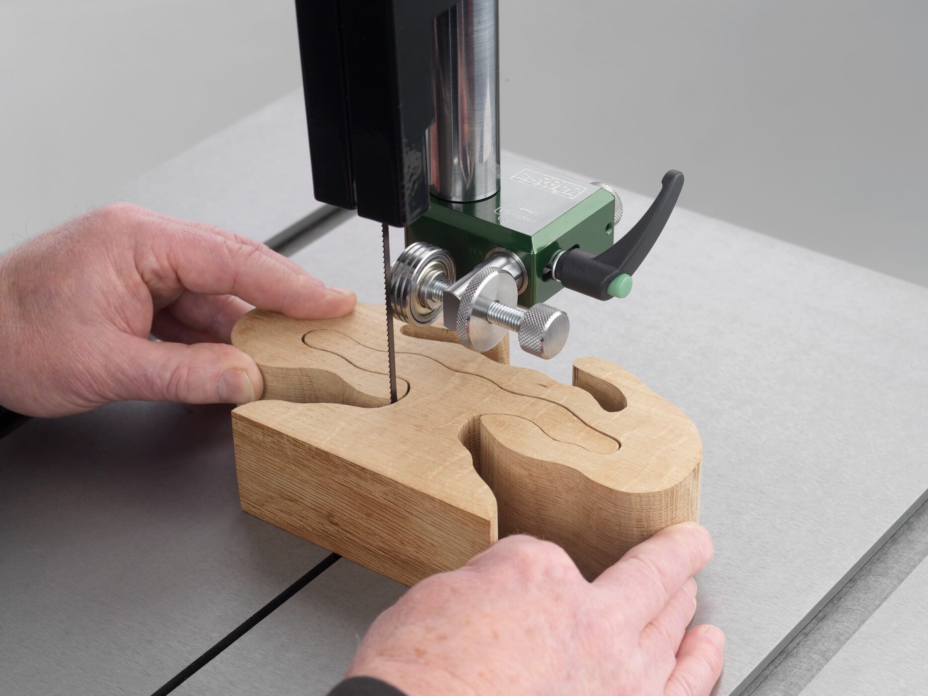 Med dette sette kan du gjøre om din BS300/BS350 til en konturbåndsag og derved sage med blad ned til ca 1mm tykkelse. Blader finnes i flere bredder/tanninger. Med et slikt tynt blad kan du skjær utrolig krappe svinger f.eks til puslespill eller andre intrikate detaljer. Bladene er av omtrent samme tykkelse som du har i en kontursag, men med båndsagen får du større saghøyde, men du kan jo ikke tre bladet gjennom hull slik som med en vanlig kontursag.