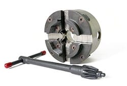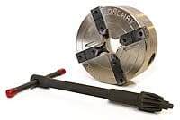 Stronghold chuck har vært i sortimentet i over 30 år og er en velprøvd, solid chuck. Stor og kraftig og er derfor godt egnet til bruk på litt større dreiebenker som tar 40cm +. Den har stor vandring på bakkene, justerbart i to stillinger, betjenes med ett håndtak og strammer med 5:1 ratio. Leveres uten adaptor som kjøpes separat tilpasset din benk.