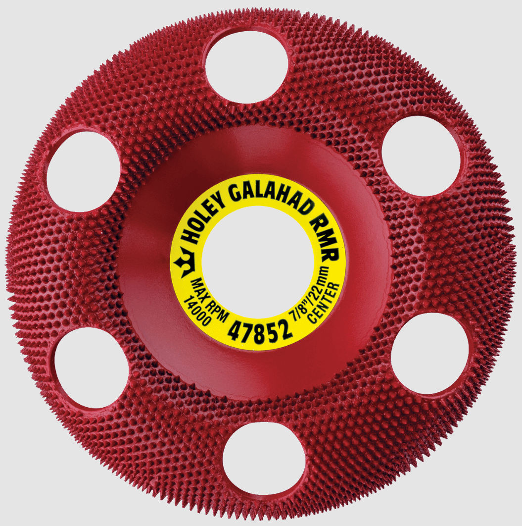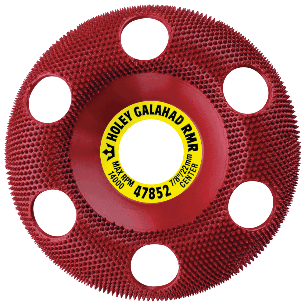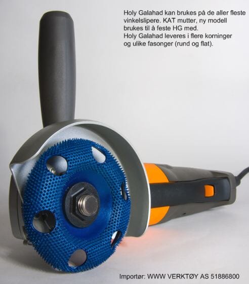 Laget i hardmetall og tilnærmet uslitelig. Hullene gjør at du kan se gjennom skiven og følge med på hva du sliper vekk, f.eks riller og merker etter andre redskaper. Denne modellen er MEDIUM og gir en forholdsvis fin overflate, men avvirker allikevel raskt. Finnes i ulike korninger og fasonger. Denne har rund kant og gjør den godt egnet til sliping av boller og fat, og mye annet. Brukes på en vanlig enhånds vinkelsliper. Vi anbefaler at KAT mutter brukes til å feste skiven med da original muttere ofte ikke får plass. ø100mm.