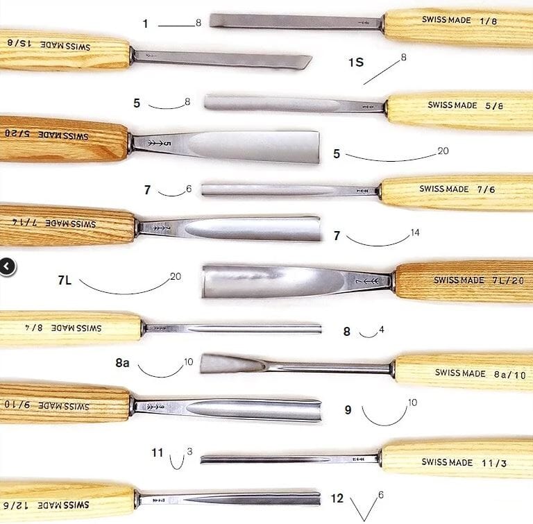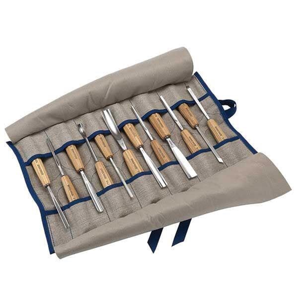 Vi kan tilby flere sett med treskjærerjern fra Pfeil. Et av de mest attraktive er dette 12 delers settet som leveres i et flott og kraftig stoffutteral.