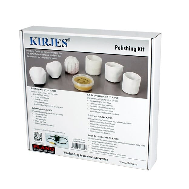 Kirjes poleringssett brukes sammen med Kirjes oppblåsbare pussesylindere. I settet følger det med polering og buffing hylser til kuleformet fasong 140R og for rett type 140. Inkludert er også 50ml giftfri poleringsvoks.