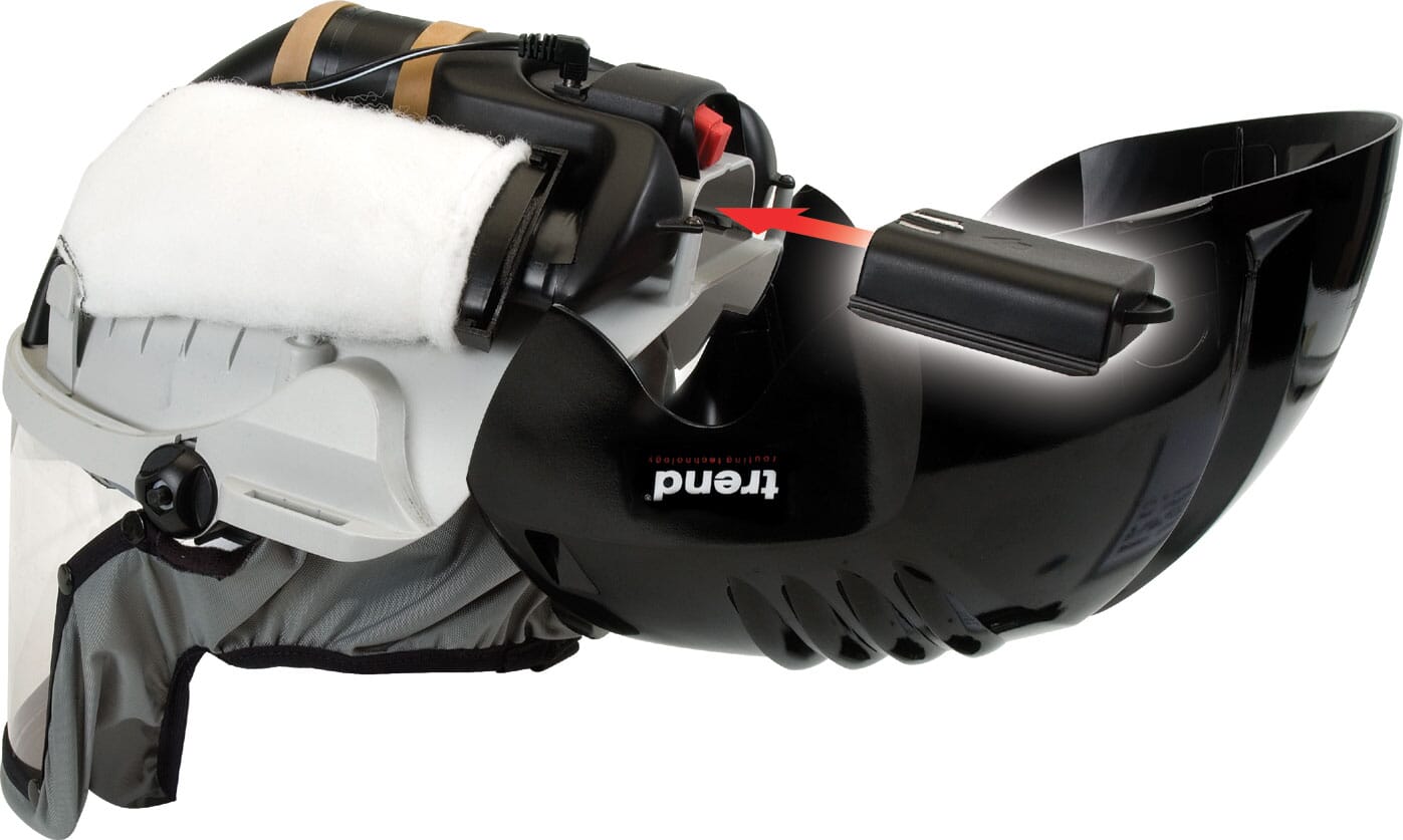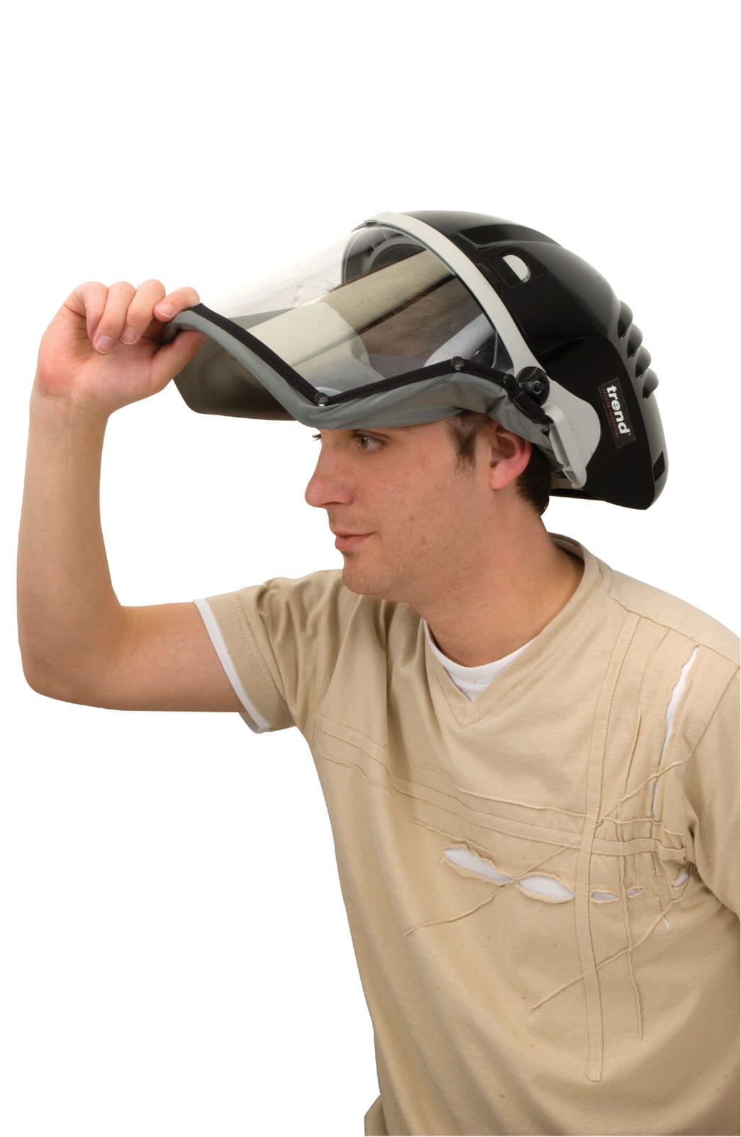 Velprøvd friskluftsmaske fra Trend med filter type APF20. Masken sitter på hodet og festemuligheter kan fullt justeres. Batteri og filter er integrert i masken. Selve masken kan vippes opp slik at du slipper å ta den av. Overtrykk inni masken hindrer både støv å trenge inn samt unngår dugg.