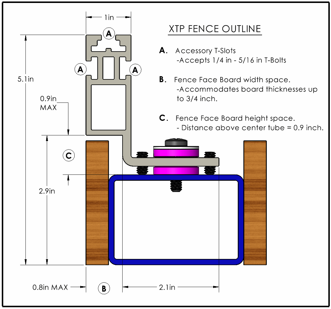 BOW XTP Xtender Pro kan oppgradere anlegget på din bordsag med Biesenmeyer-anlegg. Denne typen anlegg består av et firkantrør med paneler på hver side som anleggsflate. XTP Xtender Pro monterer du selv på ditt eksisterende anlegg, ved hjelp av medfølgende sett bolter og gjengebor. Med anlegget montert får du mulighet til å feste på ekstrautstyr som FeatherPRO og FeatherDUO fjærbrett og mye annet utstyr for bedre sikkerhet og renere kutt. Anlegget er konstruert av solid aluminium, og er enkelt å montere. Montert flush med ditt eksisterende anlegg gjør at du beholder skalaen som finnes på maskinen. Anlegget gir deg over 70mm ekstra kapasitet i høyden og finnes i 890mm og 1067mm lengde.