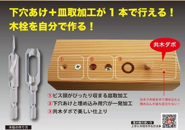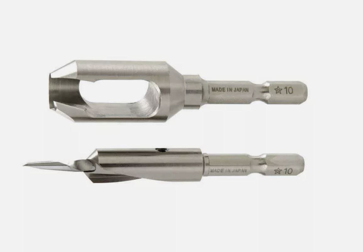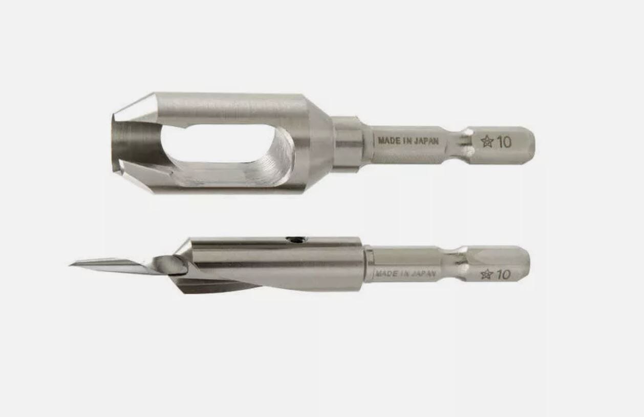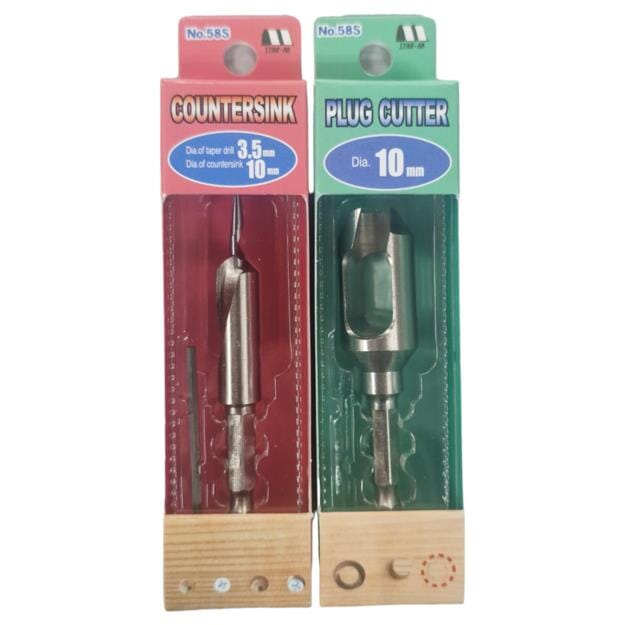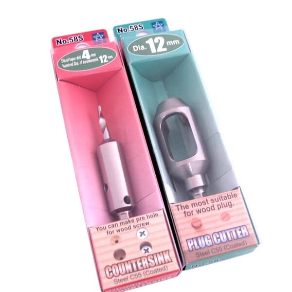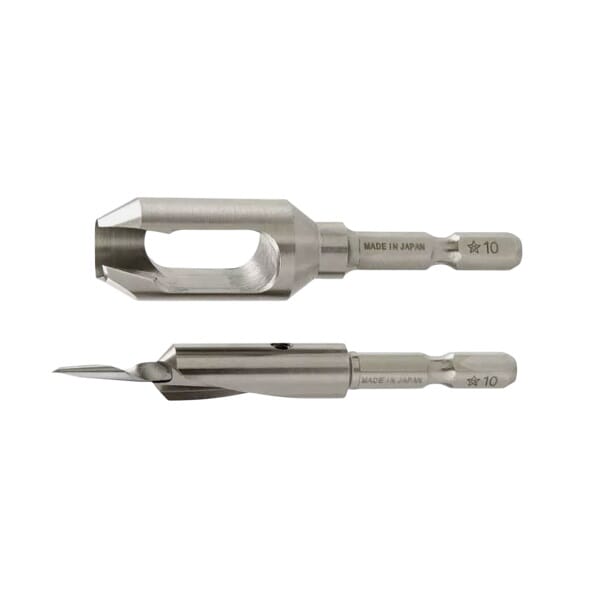 I dette settet finnes både pluggbor og forsenker som er tilpasset slik at du kan bore hull og lage plugg. Borer fine plugger og laget i et stål som er tåler mye bruk. Borelengde kan enkelt justeres. På bildet er pluggen boret ut (knekket av for illustrasjon, normalt knekker den i bunn). Plugg satt på tvers for illustrasjon. Høy kvalitet! Omdreining max 3000 o/min